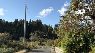 柿のオレンジと秋の陽ざし、穏やかな午後の風景関東平野の端にある小さな集落を歩いていると、秋の深まりを感じさせる風景に出会いました。澄みきった青空の下、たわわに実った柿の木が道の脇に立ち、鮮やかなオレンジ色の実をたくさんつけています。まるで秋...