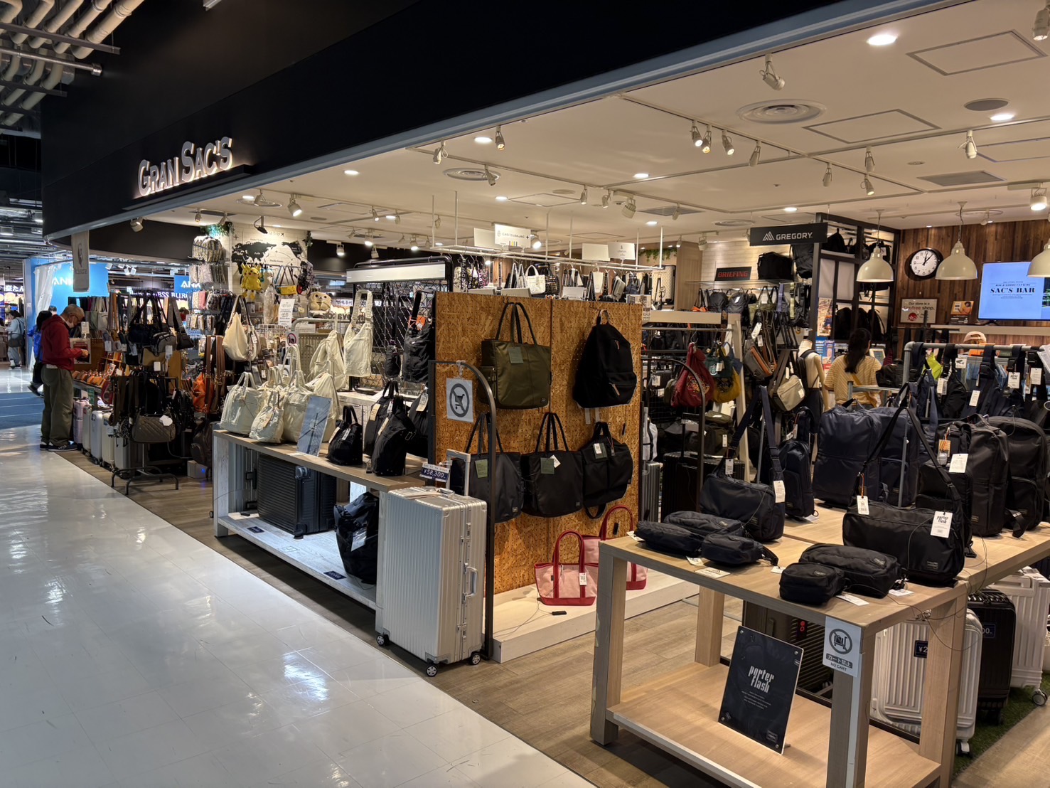 特に印象的だったのは、「GREGORY」や「PORTER」などの定番ブランドの品揃えの豊富さ。軽量で収納力も抜群なモデルが多く、旅の相棒として長く使えそうです。また、シンプルながらもデザイン性の高いバッグが多く、男女問わず手に取りたくなるものばかりでした。