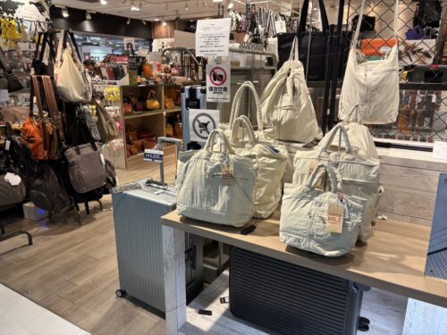 さらに、店内のレイアウトも見やすく工夫されています。カテゴリごとにバッグが整然と並べられ、素材感やカラーの違いが一目でわかるようになっています。空港内という場所柄、スーツケースを探している旅行者の姿も多く見られ、スタッフの方が丁寧に説明してくれるのも好印象でした。