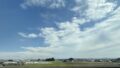 この日の空は、まさに秋晴れでした。透明感のある青空に浮かぶ白い雲がゆっくりと流れ、陽射しはやわらかく、どこか優しい。木々の緑と柿の橙、そして舗装された細い道の黒のコントラストが美しく、シンプルながらも心に残る一枚の風景です。